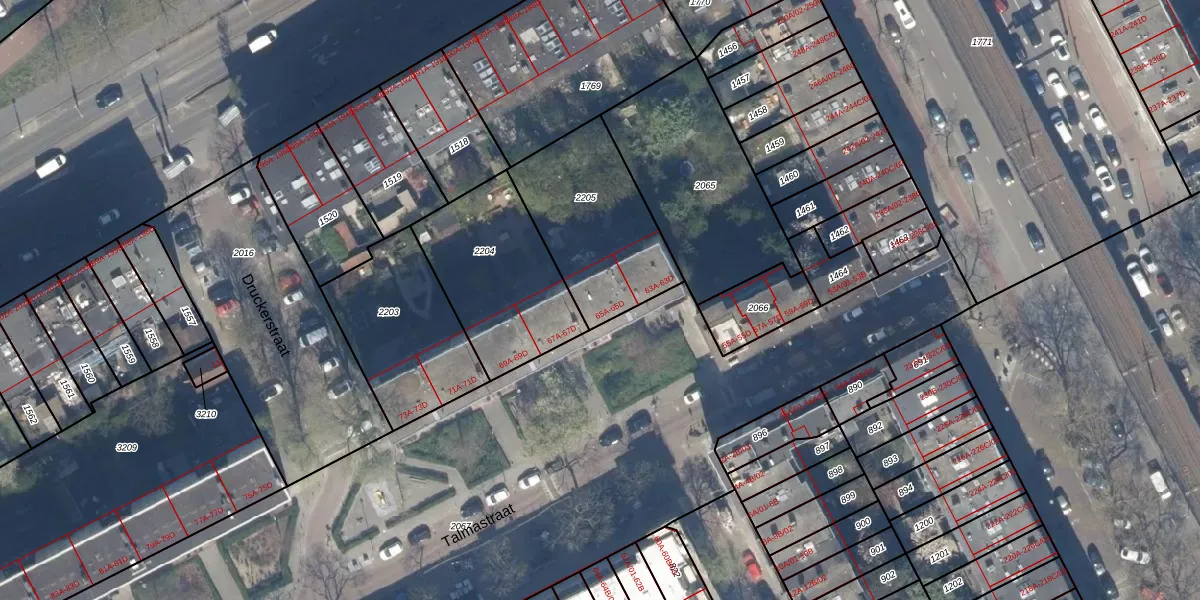 Het perceel waarop Talmastraat 65-D staat heeft een oppervlakte van 566 m². Dit is een groot perceel. De perceeloppervlakte wordt geregistreerd door het Kadaster. Gedetailleerde informatie over de maten van dit perceel kunt u vinden in het rapport Kadastrale kaart met maatvoering van Talmastraat 65-D.