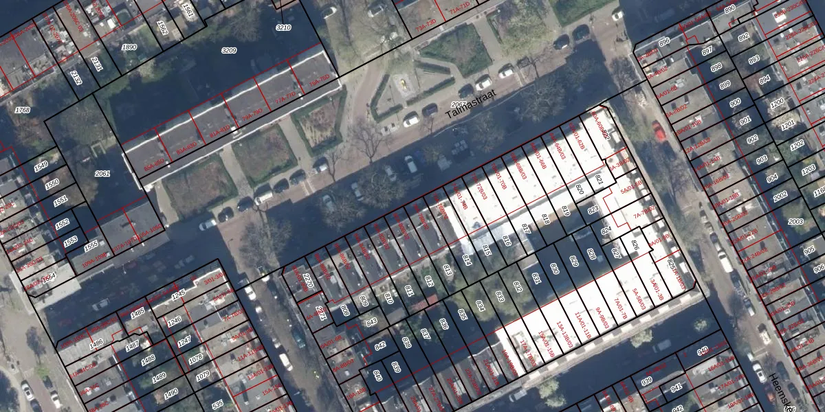 Talmastraat 78-B-02 is gelegen op kadastraal perceel RTD10AB813. Deze kadastrale aanduiding is uniek en wordt gebruikt door het Kadaster om eigendomsrechten en andere zakelijke rechten vast te leggen. Het perceel maakt onderdeel uit van de kadastrale gemeente Rotterdam.
