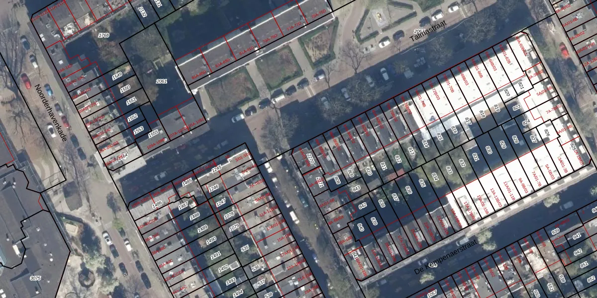 Talmastraat 90-B is gelegen op kadastraal perceel RTD10AB2270. Deze kadastrale aanduiding is uniek en wordt gebruikt door het Kadaster om eigendomsrechten en andere zakelijke rechten vast te leggen. Het perceel maakt onderdeel uit van de kadastrale gemeente Rotterdam.