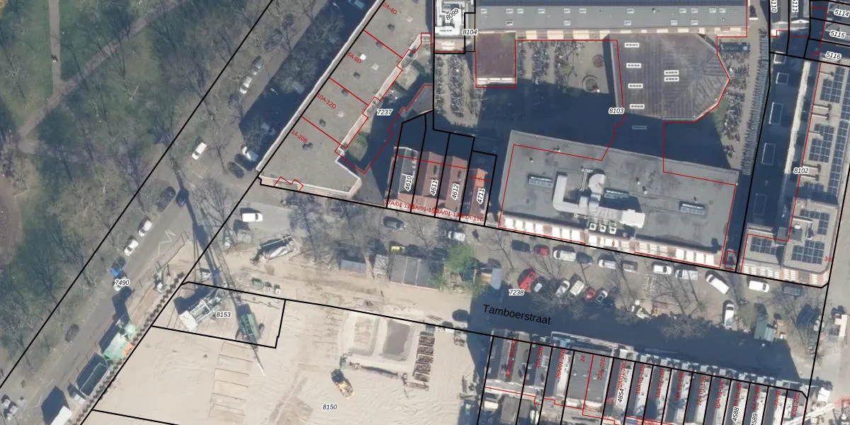 Tamboerstraat 15-A-01 is gelegen op kadastraal perceel RTD07R4611. Deze kadastrale aanduiding is uniek en wordt gebruikt door het Kadaster om eigendomsrechten en andere zakelijke rechten vast te leggen. Het perceel maakt onderdeel uit van de kadastrale gemeente Rotterdam.