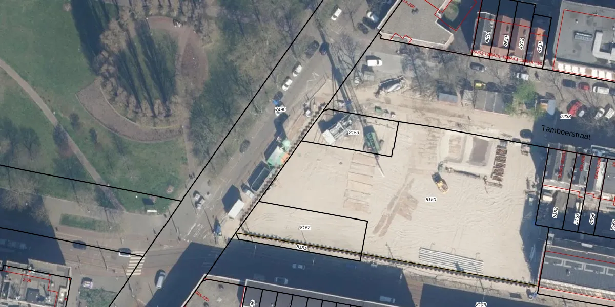 Tamboerstraat 42 is gelegen op kadastraal perceel RTD07R8150. Deze kadastrale aanduiding is uniek en wordt gebruikt door het Kadaster om eigendomsrechten en andere zakelijke rechten vast te leggen. Het perceel maakt onderdeel uit van de kadastrale gemeente Rotterdam.