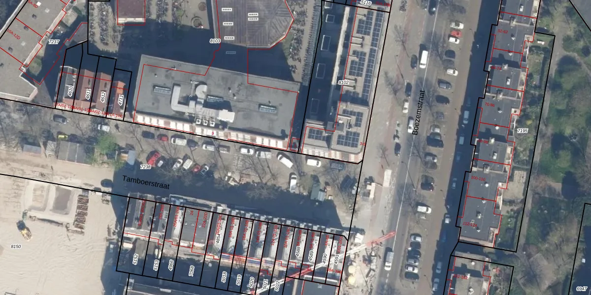 Tamboerstraat 7 is gelegen op kadastraal perceel RTD07R8103. Deze kadastrale aanduiding is uniek en wordt gebruikt door het Kadaster om eigendomsrechten en andere zakelijke rechten vast te leggen. Het perceel maakt onderdeel uit van de kadastrale gemeente Rotterdam.