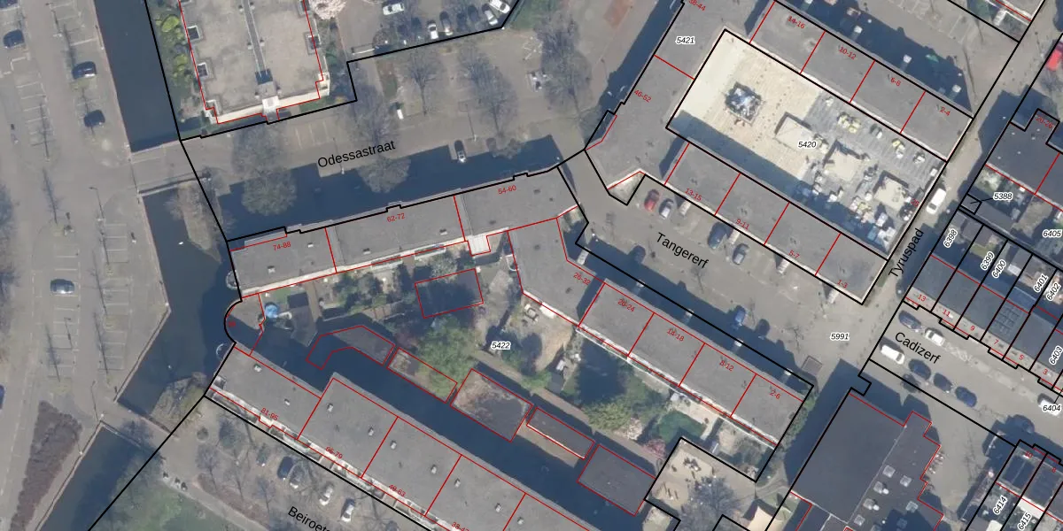 Het perceel waarop Tangererf 32 staat heeft een oppervlakte van 5420 m². Dit is een zeer groot perceel. De perceeloppervlakte wordt geregistreerd door het Kadaster. Gedetailleerde informatie over de maten van dit perceel kunt u vinden in het rapport Kadastrale kaart met maatvoering van Tangererf 32.