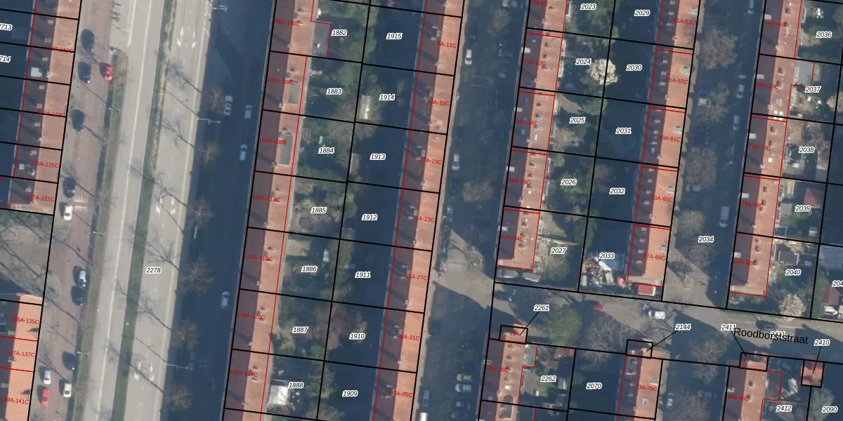 Het adres is gelegen op perceel 1912 in de sectie H en de kadastrale gemeente Charlois. De kadastrale aanduiding is aldus CLS00-H-1912. Het perceel is kleiner dan gemiddeld in Charlois. Het perceel is 315 m² groot, terwijl het gemiddelde ligt op 1147,95 m². Het grootste perceel in de kadastrale gemeente is 1,09 km². Het kleinste perceel heeft een oppervlakte van 0 m². Er zijn 6 adressen aanwezig op het perceel. In de Basisregistratie Kadaster (BRK) werden de grenzen van het perceel geregistreerd op 12-05-2003.