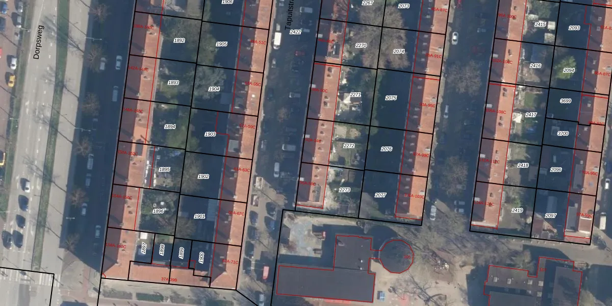 Het perceel waarop Tapuitstraat 54-C staat heeft een oppervlakte van 296 m². Dit is een middelgroot perceel. De perceeloppervlakte wordt geregistreerd door het Kadaster. Gedetailleerde informatie over de maten van dit perceel kunt u vinden in het rapport Kadastrale kaart met maatvoering van Tapuitstraat 54-C.
