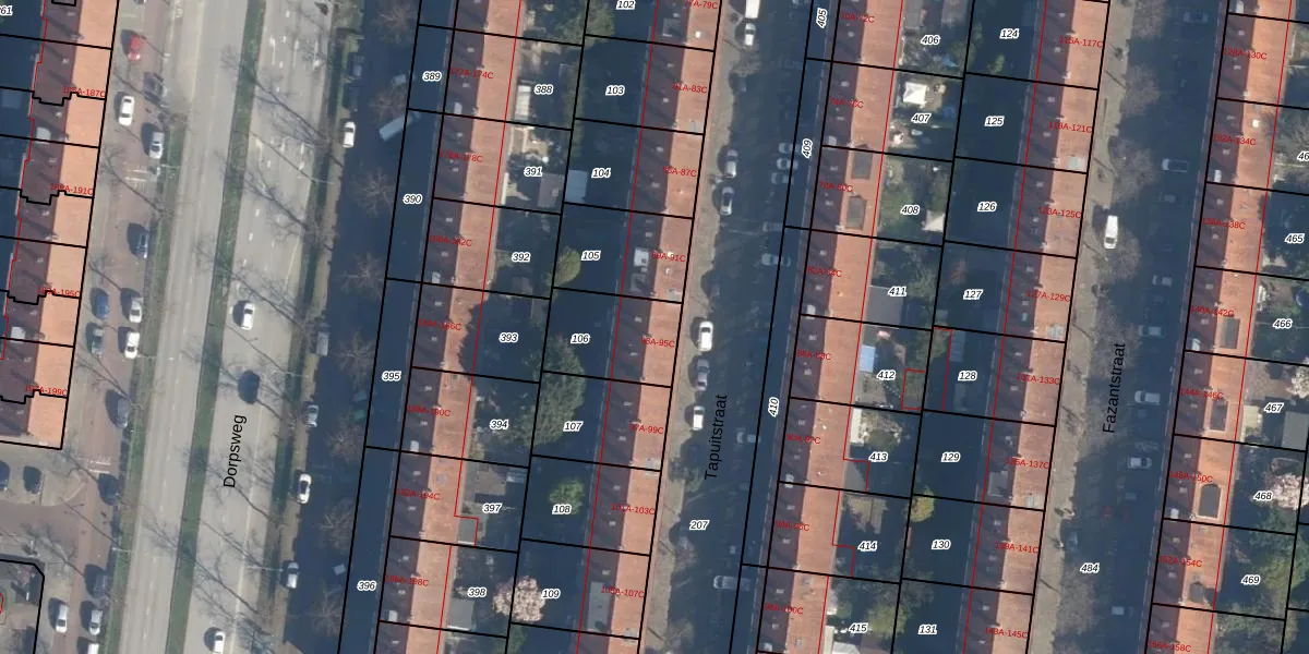 Tapuitstraat 93-A is gelegen op kadastraal perceel CLS00I106. Deze kadastrale aanduiding is uniek en wordt gebruikt door het Kadaster om eigendomsrechten en andere zakelijke rechten vast te leggen. Het perceel maakt onderdeel uit van de kadastrale gemeente Charlois.