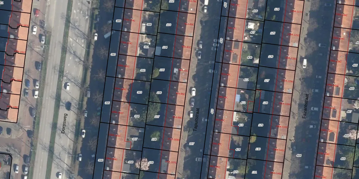 Tapuitstraat 93-B is gelegen op kadastraal perceel CLS00I106. Deze kadastrale aanduiding is uniek en wordt gebruikt door het Kadaster om eigendomsrechten en andere zakelijke rechten vast te leggen. Het perceel maakt onderdeel uit van de kadastrale gemeente Charlois.