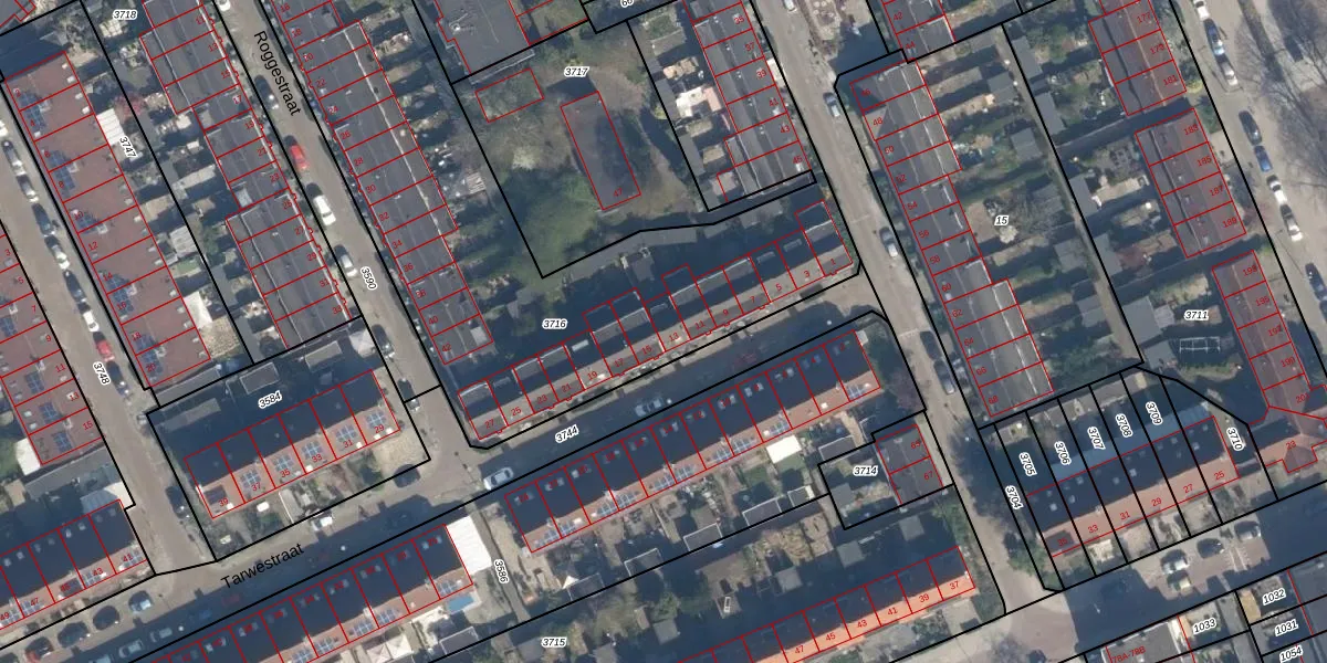 Tarwestraat 13 is gelegen op kadastraal perceel CLS00H3716. Deze kadastrale aanduiding is uniek en wordt gebruikt door het Kadaster om eigendomsrechten en andere zakelijke rechten vast te leggen. Het perceel maakt onderdeel uit van de kadastrale gemeente Charlois.