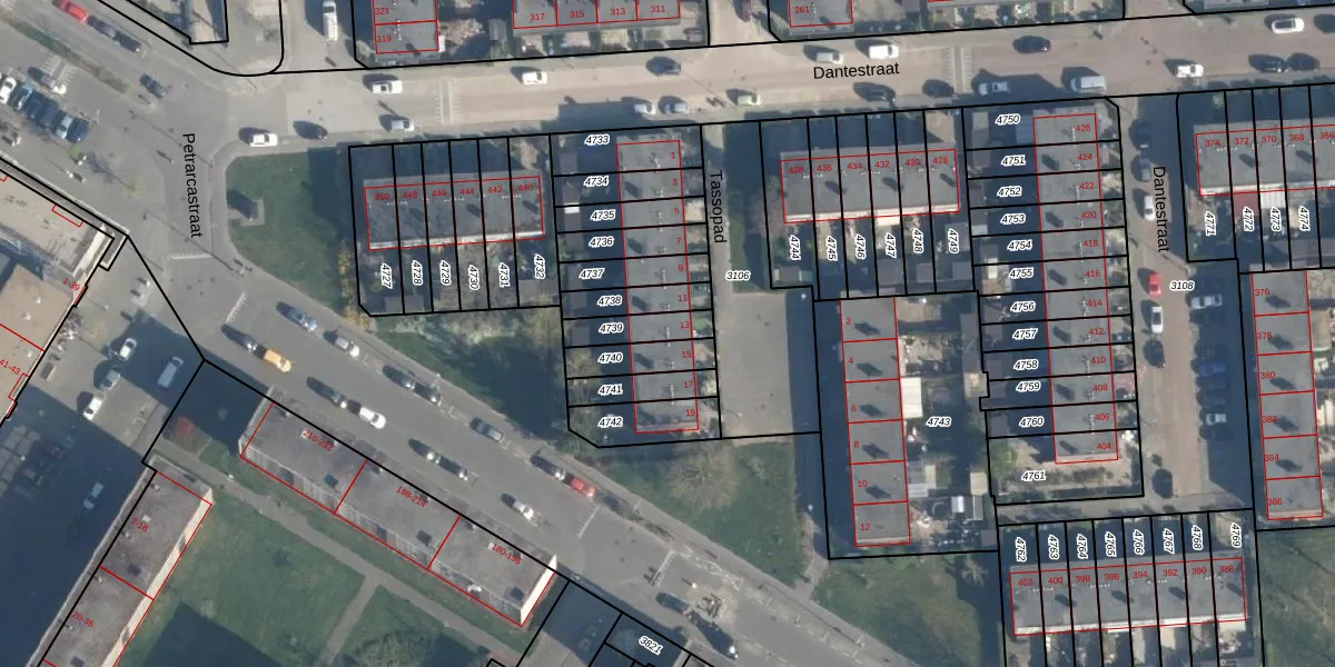 Het perceel waarop Tassopad 13 staat heeft een oppervlakte van 98 m². Dit is een klein perceel. De perceeloppervlakte wordt geregistreerd door het Kadaster. Gedetailleerde informatie over de maten van dit perceel kunt u vinden in het rapport Kadastrale kaart met maatvoering van Tassopad 13.