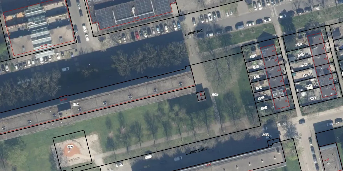 Tattistraat 44 is gelegen op kadastraal perceel KLG00K1180. Deze kadastrale aanduiding is uniek en wordt gebruikt door het Kadaster om eigendomsrechten en andere zakelijke rechten vast te leggen. Het perceel maakt onderdeel uit van de kadastrale gemeente Kralingen.