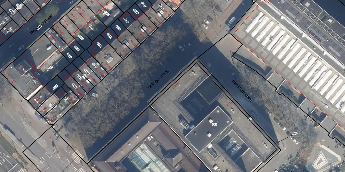 Teilingerstraat 172 is gelegen op kadastraal perceel RTD08AD771. Deze kadastrale aanduiding is uniek en wordt gebruikt door het Kadaster om eigendomsrechten en andere zakelijke rechten vast te leggen. Het perceel maakt onderdeel uit van de kadastrale gemeente Rotterdam.