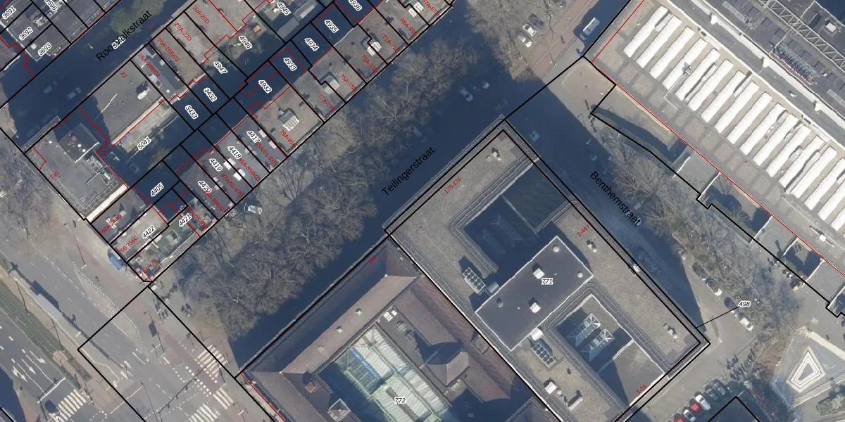 Teilingerstraat 176 is gelegen op kadastraal perceel RTD08AD771. Deze kadastrale aanduiding is uniek en wordt gebruikt door het Kadaster om eigendomsrechten en andere zakelijke rechten vast te leggen. Het perceel maakt onderdeel uit van de kadastrale gemeente Rotterdam.