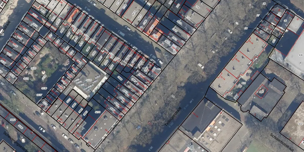 Het perceel waarop Teilingerstraat 21-A staat heeft een oppervlakte van 59 m². Dit is een klein perceel. De perceeloppervlakte wordt geregistreerd door het Kadaster. Gedetailleerde informatie over de maten van dit perceel kunt u vinden in het rapport Kadastrale kaart met maatvoering van Teilingerstraat 21-A.