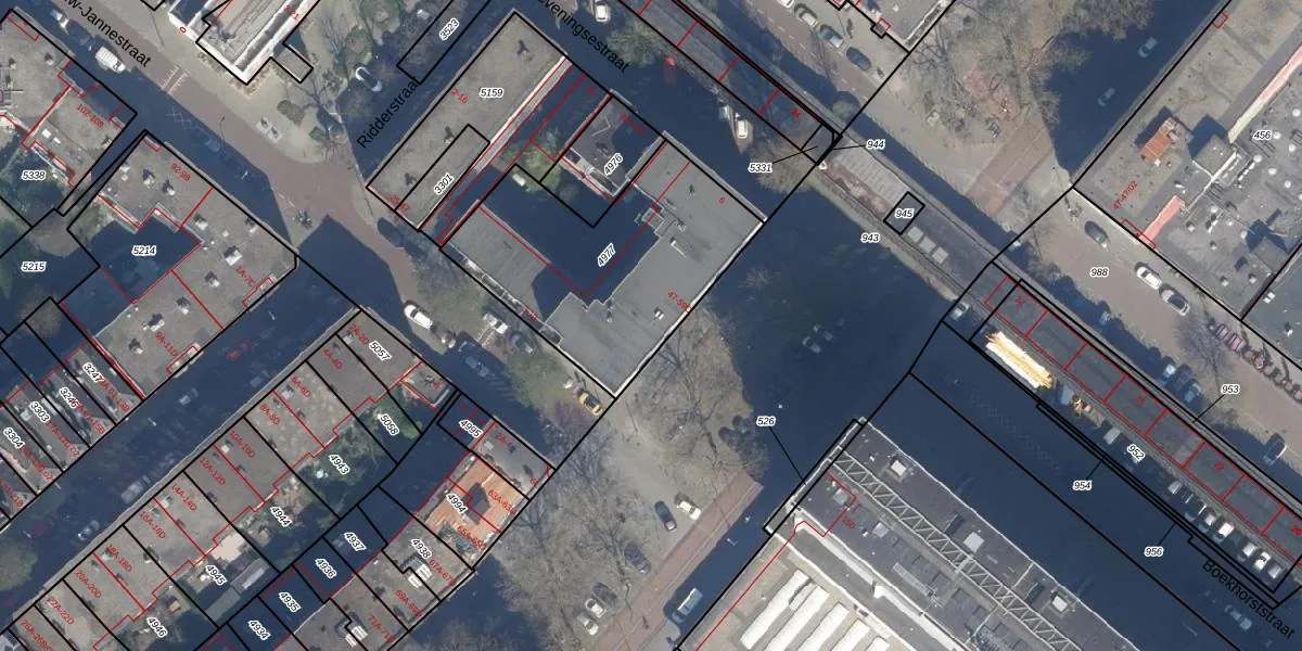 Het adres ligt op het perceel RTD08-X-4977, dat zich in de kadastrale gemeente Rotterdam bevindt. De oppervlakte van het perceel is 983 m². Dat is groter dan gemiddeld in Rotterdam, waar de gemiddelde perceeloppervlakte op 689,2 m² ligt. De grootste perceeloppervlakte in de kadastrale gemeente is 4,0 ha. De kleinste oppervlakte bedraagt 0 m². Er zijn 42 adressen aanwezig op het perceel. De laatste wijziging in het de Basisregistratie Kadaster (BRK) was op 20-04-2010.