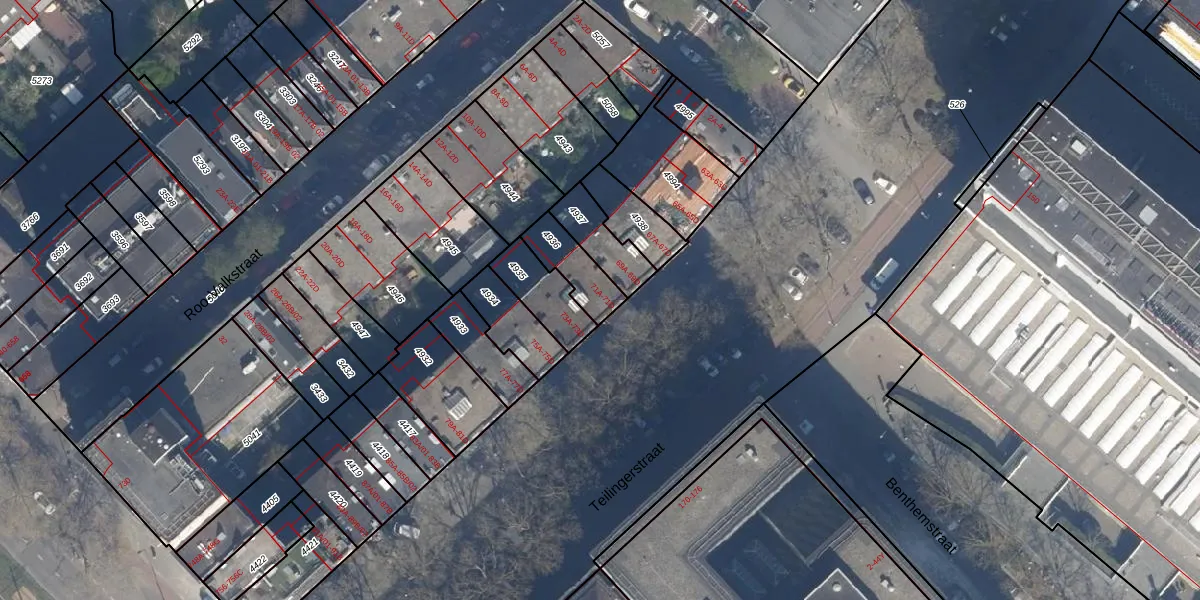 Het adres is gelegen op perceel 4936 in de sectie X en de kadastrale gemeente Rotterdam. De kadastrale aanduiding is aldus RTD08-X-4936. De gemiddelde perceelgrootte in Rotterdam is 689,2 m². Dit perceel is kleiner: de perceeloppervlakte bedraagt 127 m². Het grootste perceel in de kadastrale gemeente is 4,0 ha. Het kleinste perceel heeft een oppervlakte van 0 m². Er zijn 4 adressen aanwezig op het perceel. De huidige grenzen van het perceel zijn digitaal in de Basisregistratie Kadaster (BRK) geregistreerd op 10-07-2003.
