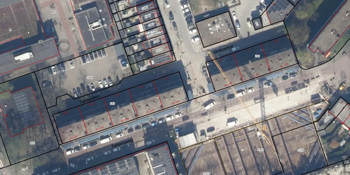 Teldershof 2 is gelegen op kadastraal perceel SBK01D743. Deze kadastrale aanduiding is uniek en wordt gebruikt door het Kadaster om eigendomsrechten en andere zakelijke rechten vast te leggen. Het perceel maakt onderdeel uit van de kadastrale gemeente Schiebroek.