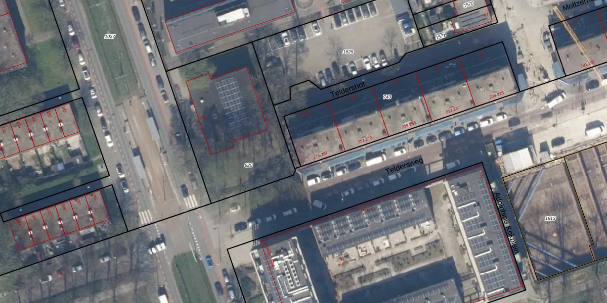 Teldershof 20 is gelegen op kadastraal perceel SBK01D743. Deze kadastrale aanduiding is uniek en wordt gebruikt door het Kadaster om eigendomsrechten en andere zakelijke rechten vast te leggen. Het perceel maakt onderdeel uit van de kadastrale gemeente Schiebroek.