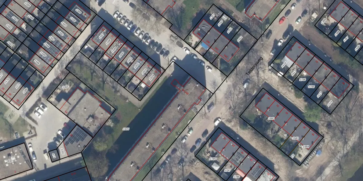 Teldersweg 107 is gelegen op kadastraal perceel SBK01D1605. Deze kadastrale aanduiding is uniek en wordt gebruikt door het Kadaster om eigendomsrechten en andere zakelijke rechten vast te leggen. Het perceel maakt onderdeel uit van de kadastrale gemeente Schiebroek.