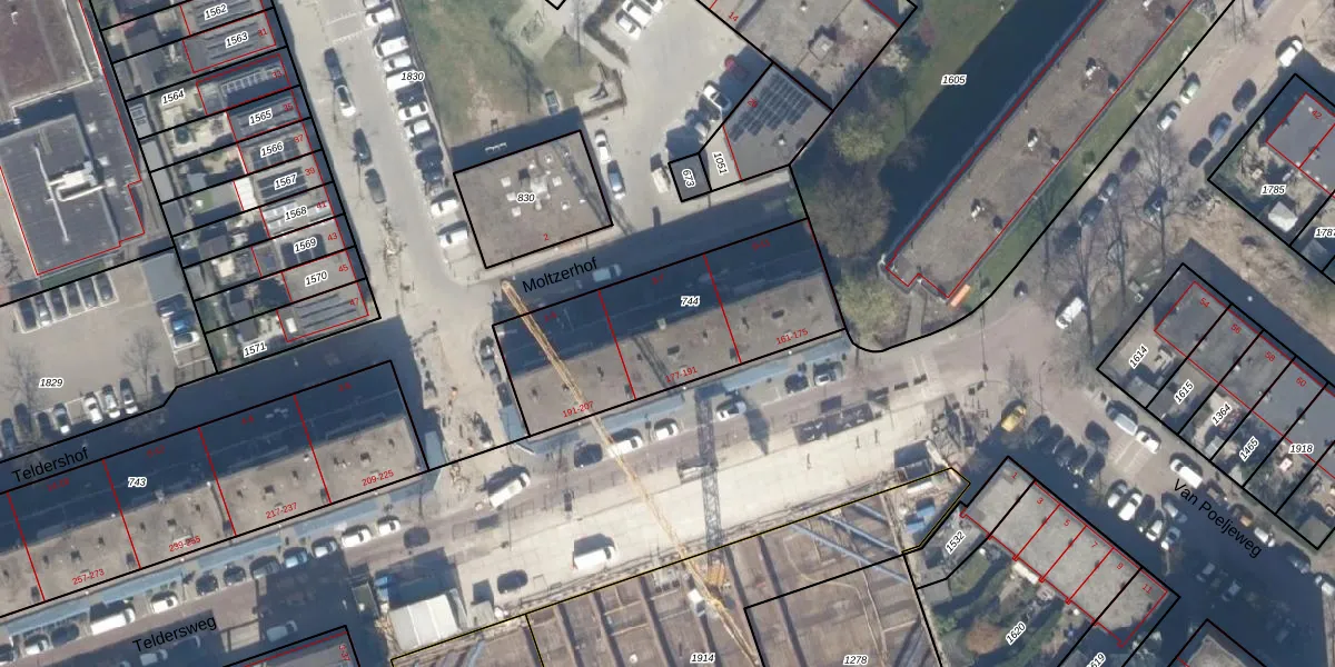 Teldersweg 181 is gelegen op kadastraal perceel SBK01D744. Deze kadastrale aanduiding is uniek en wordt gebruikt door het Kadaster om eigendomsrechten en andere zakelijke rechten vast te leggen. Het perceel maakt onderdeel uit van de kadastrale gemeente Schiebroek.
