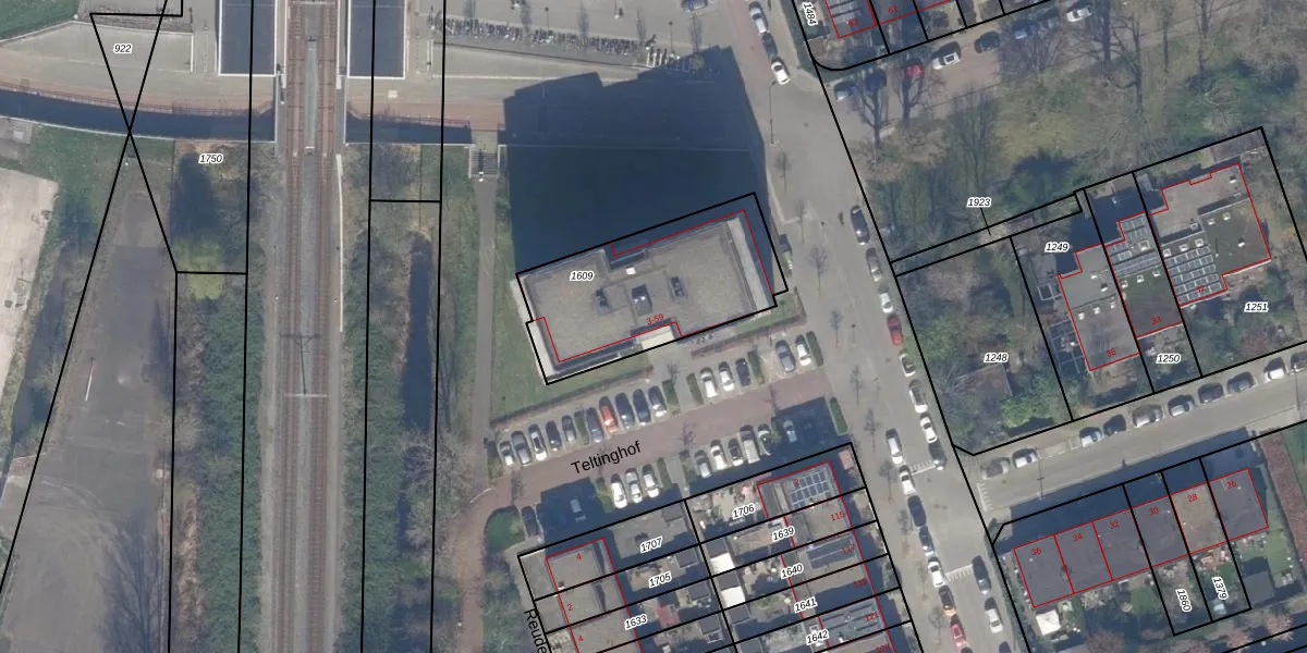 Teltinghof 23 is gelegen op kadastraal perceel SBK01D1609. Deze kadastrale aanduiding is uniek en wordt gebruikt door het Kadaster om eigendomsrechten en andere zakelijke rechten vast te leggen. Het perceel maakt onderdeel uit van de kadastrale gemeente Schiebroek.