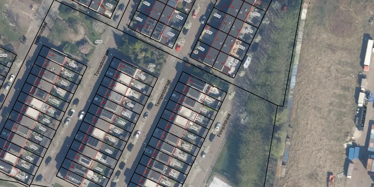 Tempeststraat 13-A is gelegen op kadastraal perceel ISM01D4584. Deze kadastrale aanduiding is uniek en wordt gebruikt door het Kadaster om eigendomsrechten en andere zakelijke rechten vast te leggen. Het perceel maakt onderdeel uit van de kadastrale gemeente IJsselmonde.