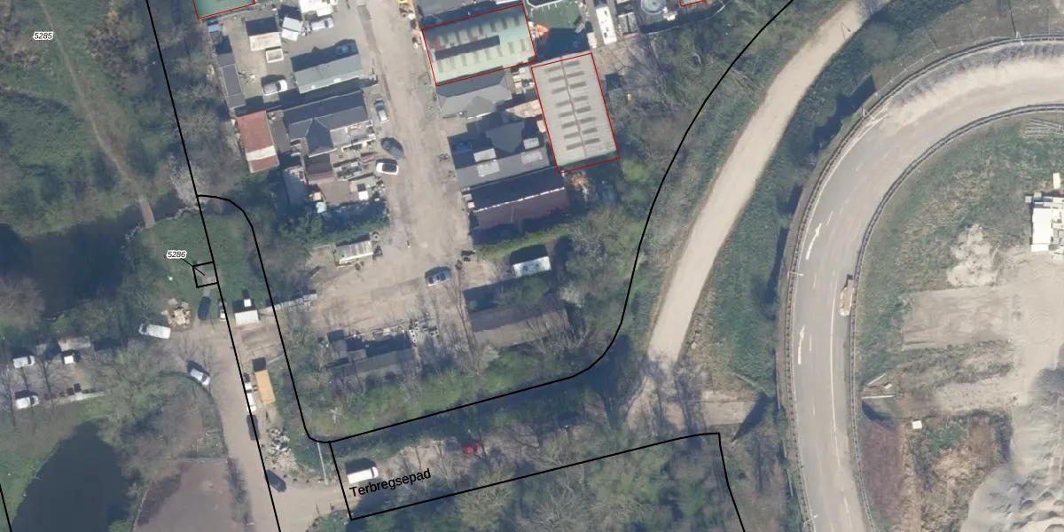 Het perceel waarop Terbregsehof 100 staat heeft een oppervlakte van 2,1 ha. Dit is een zeer groot perceel. De perceeloppervlakte wordt geregistreerd door het Kadaster. Gedetailleerde informatie over de maten van dit perceel kunt u vinden in het rapport Kadastrale kaart met maatvoering van Terbregsehof 100.