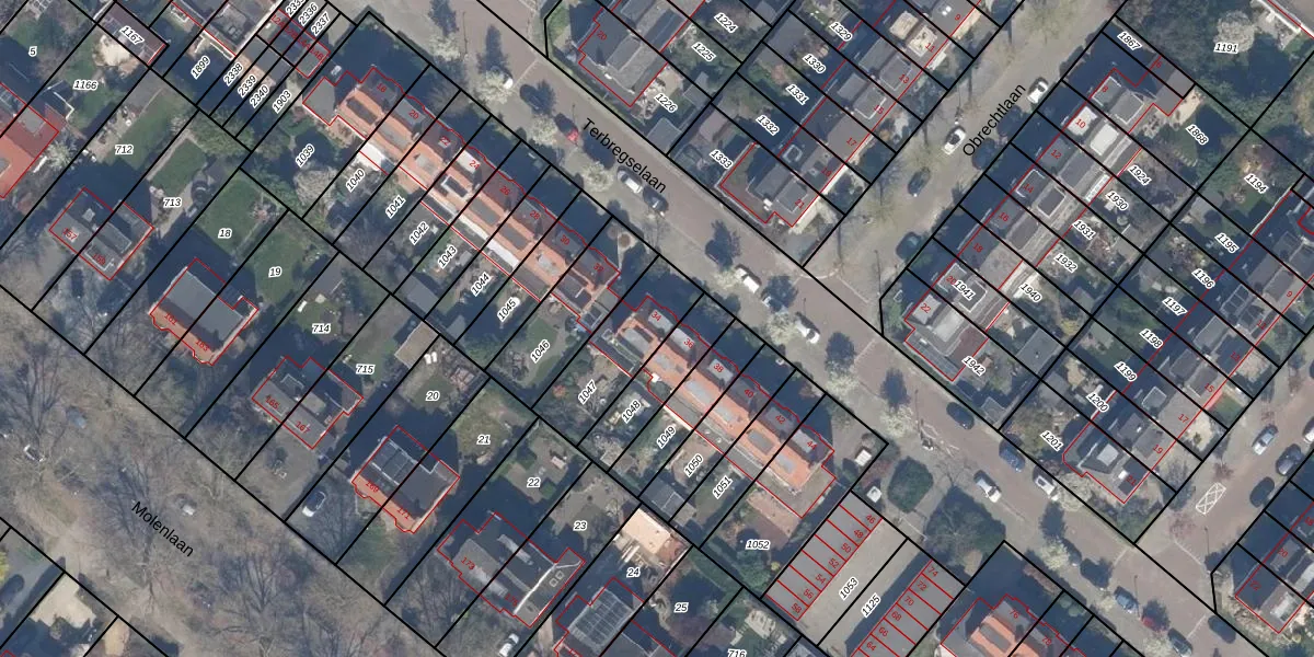 Het perceel waarop Terbregselaan 34 staat heeft een oppervlakte van 281 m². Dit is een middelgroot perceel. De perceeloppervlakte wordt geregistreerd door het Kadaster. Gedetailleerde informatie over de maten van dit perceel kunt u vinden in het rapport Kadastrale kaart met maatvoering van Terbregselaan 34.
