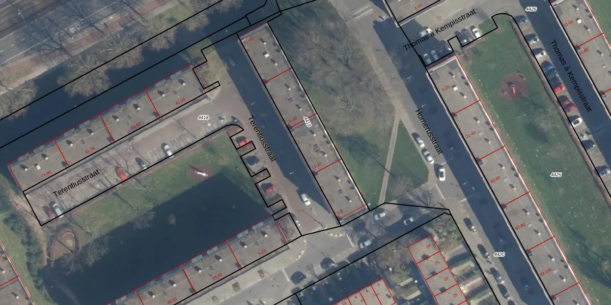 Terentiusstraat 17 is gelegen op kadastraal perceel ISM01C4419. Deze kadastrale aanduiding is uniek en wordt gebruikt door het Kadaster om eigendomsrechten en andere zakelijke rechten vast te leggen. Het perceel maakt onderdeel uit van de kadastrale gemeente IJsselmonde.