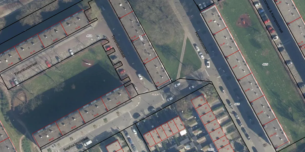 Terentiusstraat 8 is gelegen op kadastraal perceel ISM01C4419. Deze kadastrale aanduiding is uniek en wordt gebruikt door het Kadaster om eigendomsrechten en andere zakelijke rechten vast te leggen. Het perceel maakt onderdeel uit van de kadastrale gemeente IJsselmonde.