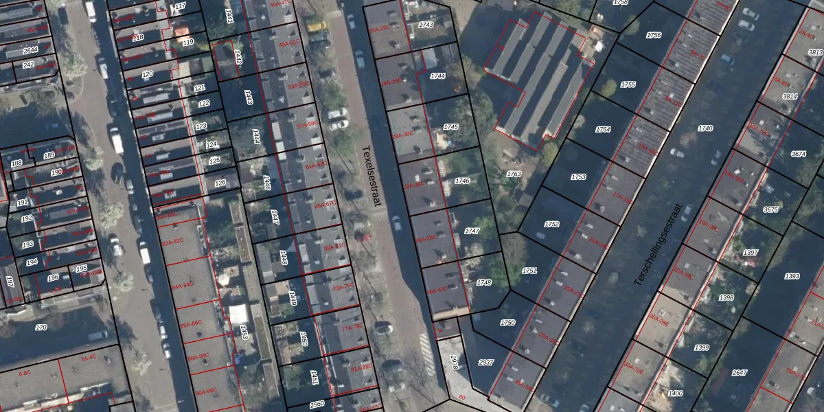Texelsestraat 34-A is gelegen op kadastraal perceel CLS00H1746. Deze kadastrale aanduiding is uniek en wordt gebruikt door het Kadaster om eigendomsrechten en andere zakelijke rechten vast te leggen. Het perceel maakt onderdeel uit van de kadastrale gemeente Charlois.