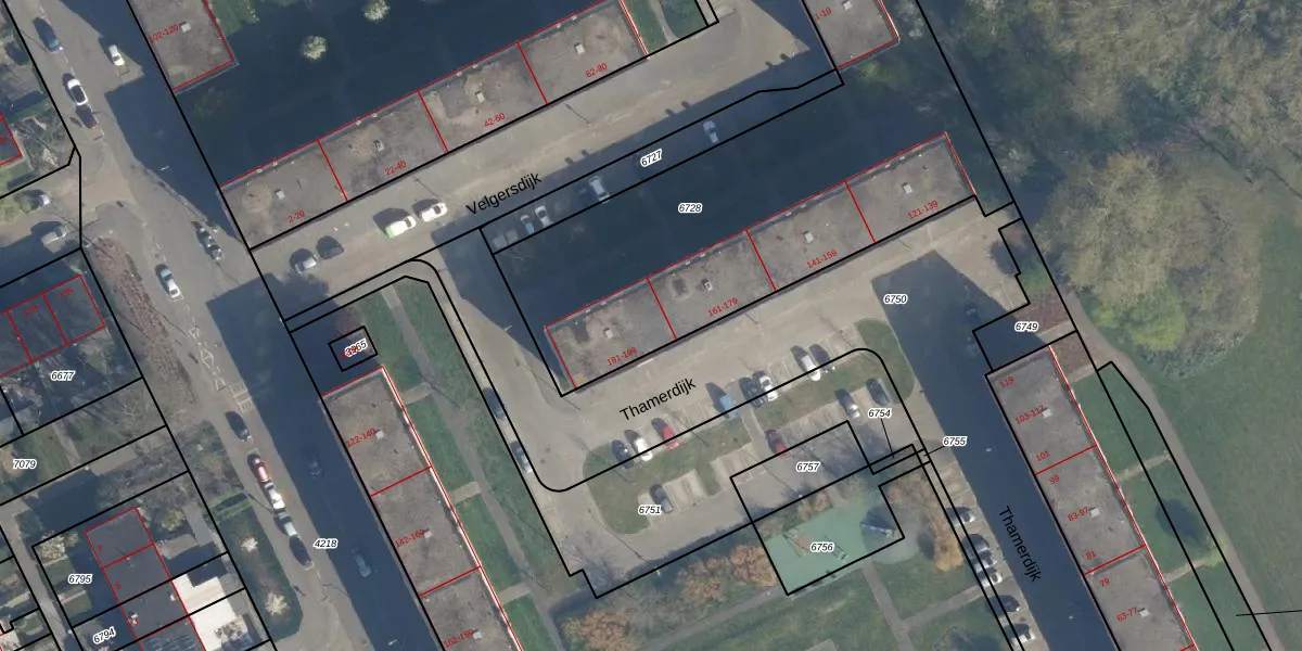 Thamerdijk 181 is gelegen op kadastraal perceel ISM01B6728. Deze kadastrale aanduiding is uniek en wordt gebruikt door het Kadaster om eigendomsrechten en andere zakelijke rechten vast te leggen. Het perceel maakt onderdeel uit van de kadastrale gemeente IJsselmonde.
