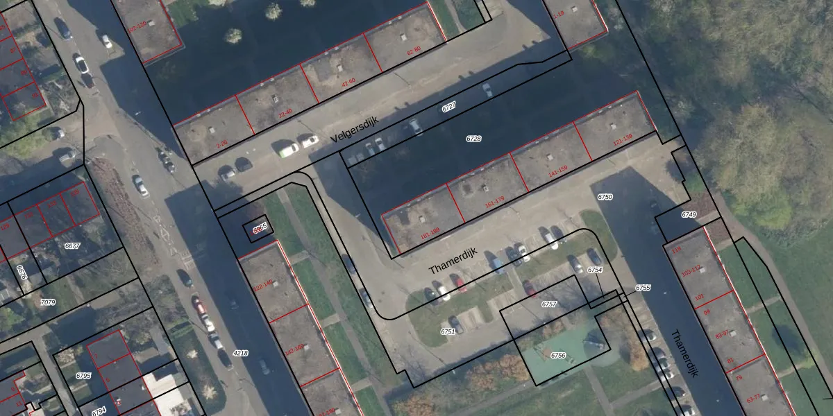 Thamerdijk 195 is gelegen op kadastraal perceel ISM01B6728. Deze kadastrale aanduiding is uniek en wordt gebruikt door het Kadaster om eigendomsrechten en andere zakelijke rechten vast te leggen. Het perceel maakt onderdeel uit van de kadastrale gemeente IJsselmonde.