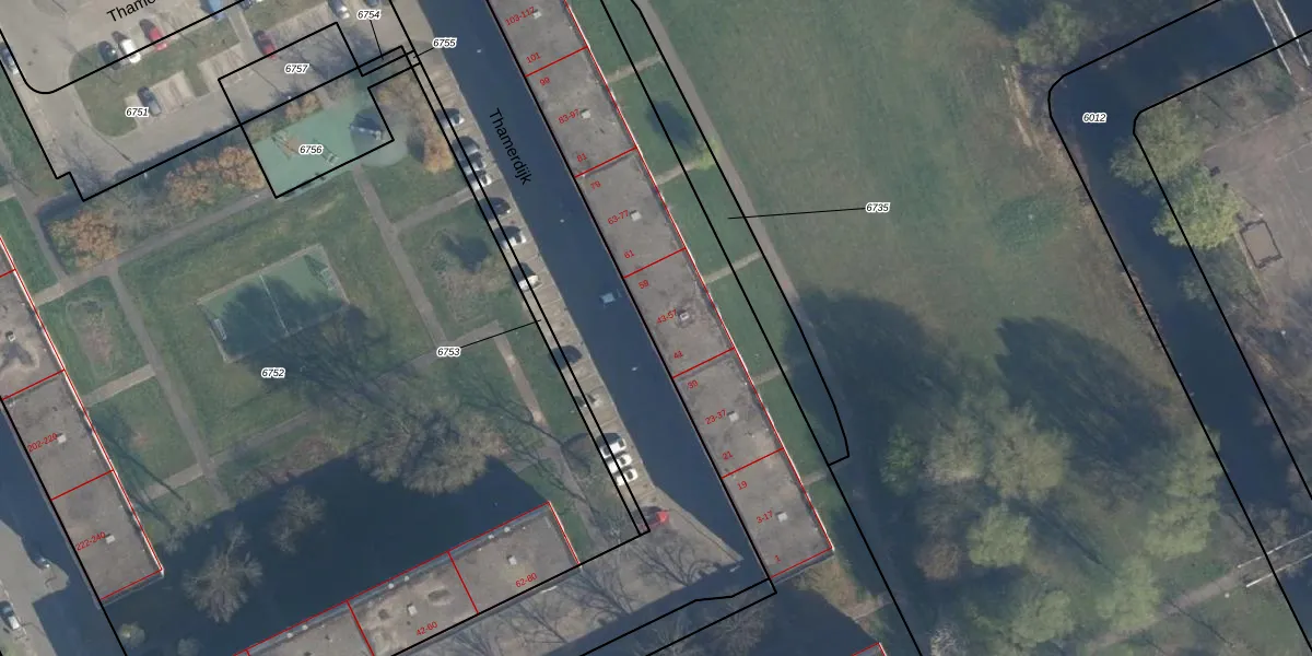 Thamerdijk 45 is gelegen op kadastraal perceel ISM01B6747. Deze kadastrale aanduiding is uniek en wordt gebruikt door het Kadaster om eigendomsrechten en andere zakelijke rechten vast te leggen. Het perceel maakt onderdeel uit van de kadastrale gemeente IJsselmonde.
