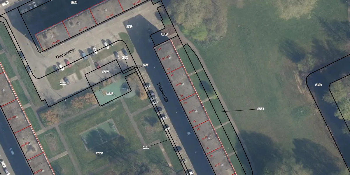 Thamerdijk 85 is gelegen op kadastraal perceel ISM01B6747. Deze kadastrale aanduiding is uniek en wordt gebruikt door het Kadaster om eigendomsrechten en andere zakelijke rechten vast te leggen. Het perceel maakt onderdeel uit van de kadastrale gemeente IJsselmonde.