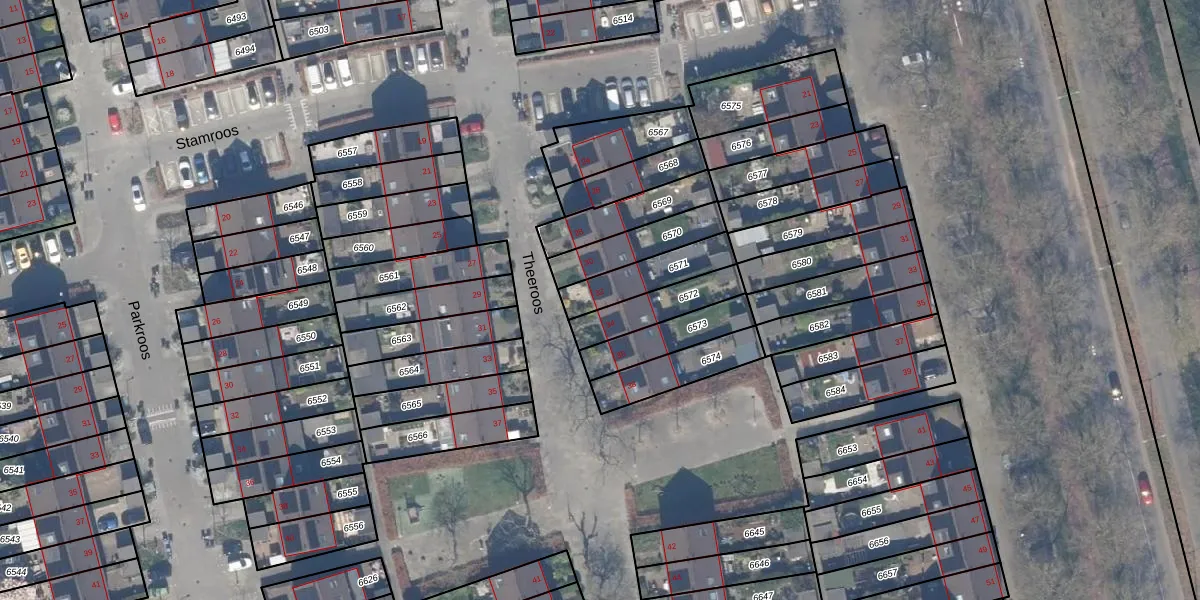 Theeroos 32 is gelegen op kadastraal perceel HLG03B6571. Deze kadastrale aanduiding is uniek en wordt gebruikt door het Kadaster om eigendomsrechten en andere zakelijke rechten vast te leggen. Het perceel maakt onderdeel uit van de kadastrale gemeente Hillegersberg.