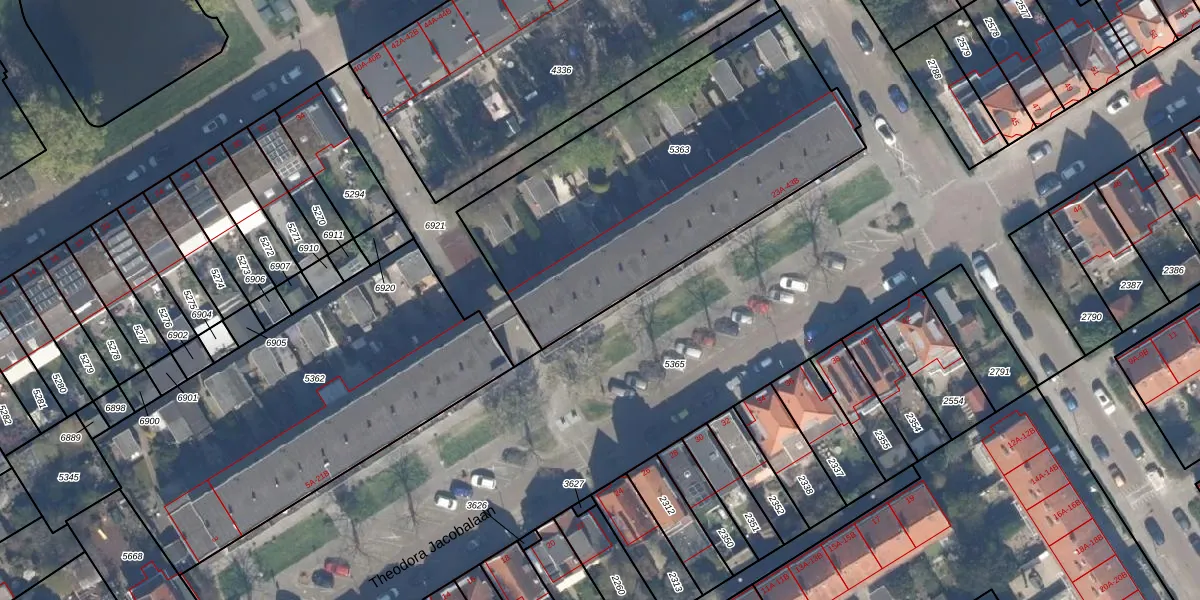 Theodora Jacobalaan 33-A is gelegen op kadastraal perceel OVS00C5363. Deze kadastrale aanduiding is uniek en wordt gebruikt door het Kadaster om eigendomsrechten en andere zakelijke rechten vast te leggen. Het perceel maakt onderdeel uit van de kadastrale gemeente Overschie.