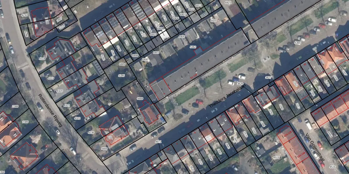 Theodora Jacobalaan 5-B is gelegen op kadastraal perceel OVS00C5362. Deze kadastrale aanduiding is uniek en wordt gebruikt door het Kadaster om eigendomsrechten en andere zakelijke rechten vast te leggen. Het perceel maakt onderdeel uit van de kadastrale gemeente Overschie.