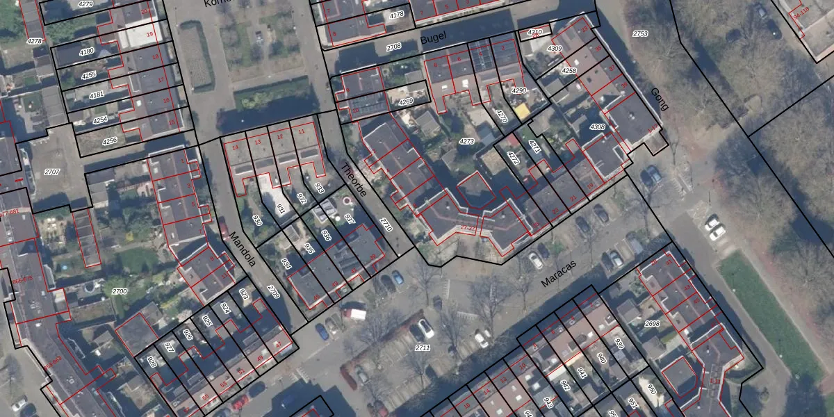 Het perceel waarop Theorbe 8 staat heeft een oppervlakte van 1560 m². Dit is een zeer groot perceel. De perceeloppervlakte wordt geregistreerd door het Kadaster. Gedetailleerde informatie over de maten van dit perceel kunt u vinden in het rapport Kadastrale kaart met maatvoering van Theorbe 8.