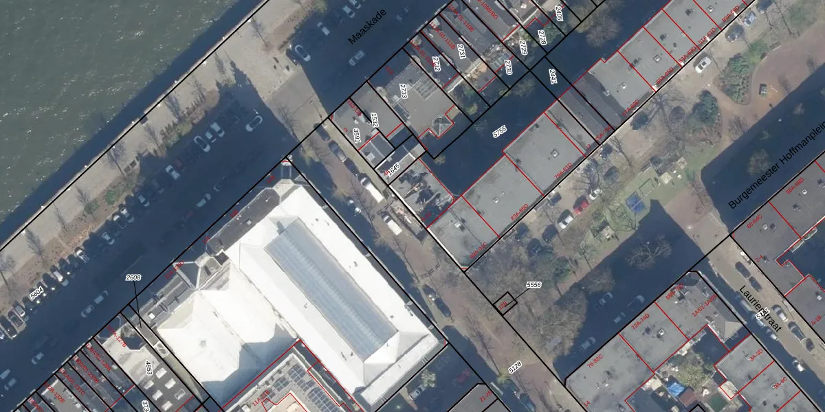 Het adres is gelegen op perceel 5755 in de sectie Q en de kadastrale gemeente Rotterdam. De kadastrale aanduiding is aldus RTD05-Q-5755. Het perceel is kleiner dan gemiddeld in Rotterdam. Het perceel is 1169 m² groot, terwijl het gemiddelde ligt op 1401,79 m². Het kleinste perceel in de kadastrale gemeente is 0 m² groot. De grootste perceeloppervlakte is 36,8 ha. Op het perceel zijn 27 adressen aanwezig. De huidige grenzen van het perceel zijn digitaal in de Basisregistratie Kadaster (BRK) geregistreerd op 21-01-2003.