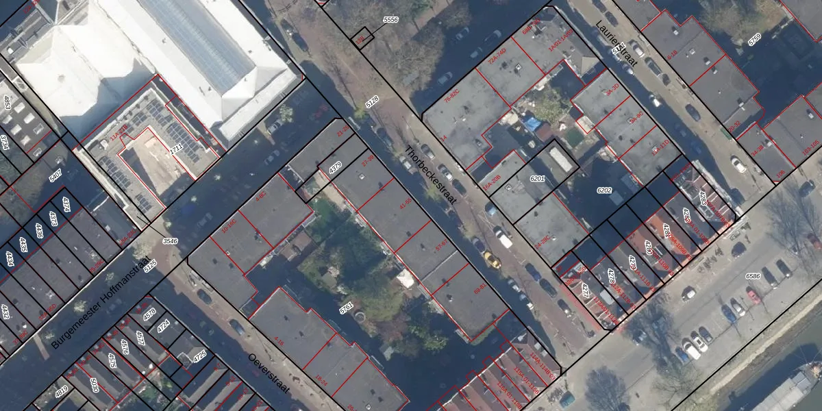 Het perceel waarop Thorbeckestraat 45 staat heeft een oppervlakte van 3807 m². Dit is een zeer groot perceel. De perceeloppervlakte wordt geregistreerd door het Kadaster. Gedetailleerde informatie over de maten van dit perceel kunt u vinden in het rapport Kadastrale kaart met maatvoering van Thorbeckestraat 45.
