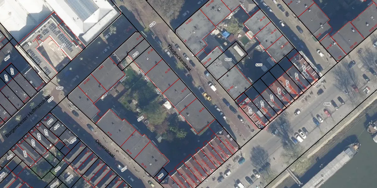 Thorbeckestraat 63 is gelegen op kadastraal perceel RTD05Q5761. Deze kadastrale aanduiding is uniek en wordt gebruikt door het Kadaster om eigendomsrechten en andere zakelijke rechten vast te leggen. Het perceel maakt onderdeel uit van de kadastrale gemeente Rotterdam.