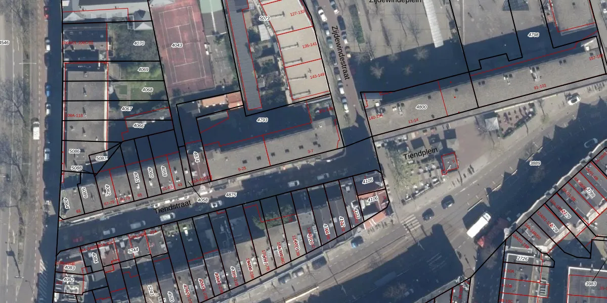 Tiendstraat 3 is gelegen op kadastraal perceel RTD06S4793. Deze kadastrale aanduiding is uniek en wordt gebruikt door het Kadaster om eigendomsrechten en andere zakelijke rechten vast te leggen. Het perceel maakt onderdeel uit van de kadastrale gemeente Rotterdam.