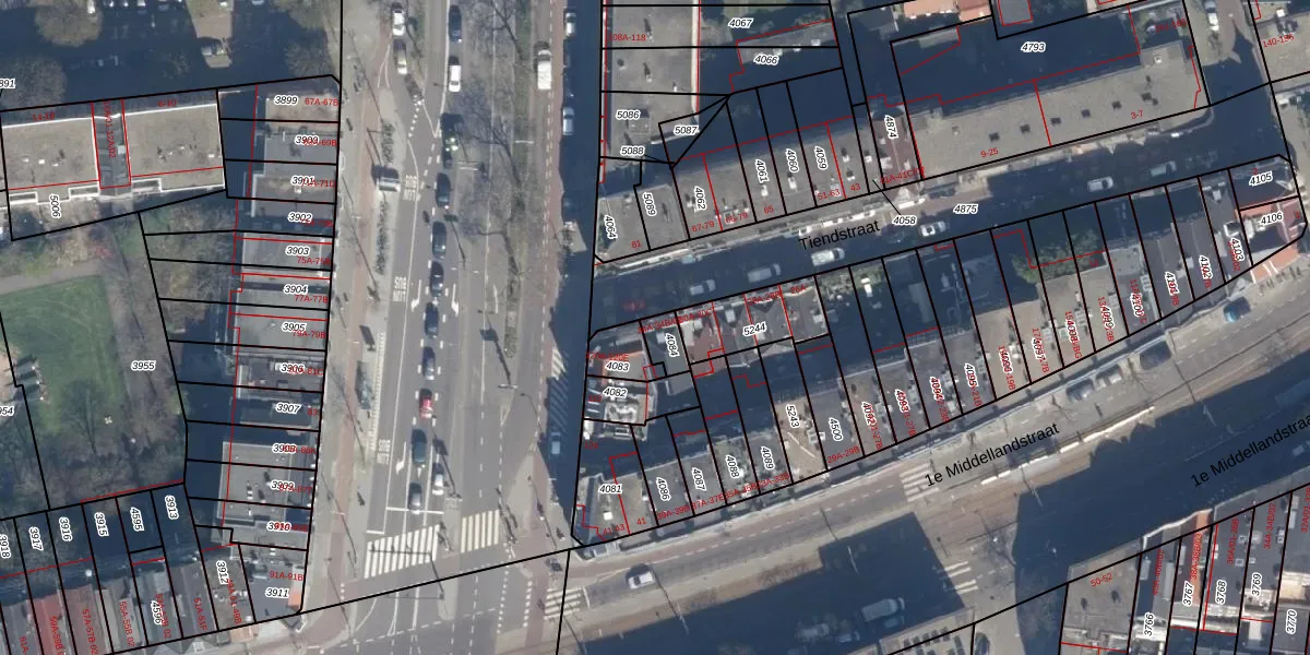 Het adres is gelegen op perceel 4084 in de sectie S en de kadastrale gemeente Rotterdam. De kadastrale aanduiding is aldus RTD06-S-4084. Het perceel is kleiner dan gemiddeld in Rotterdam. Het perceel is 50 m² groot, terwijl het gemiddelde ligt op 692,84 m². Het grootste perceel in de kadastrale gemeente is 4,7 ha. Het kleinste perceel heeft een oppervlakte van 0 m². Op het perceel zijn 3 adressen aanwezig. In de Basisregistratie Kadaster (BRK) werden de grenzen van het perceel geregistreerd op 12-03-2003.