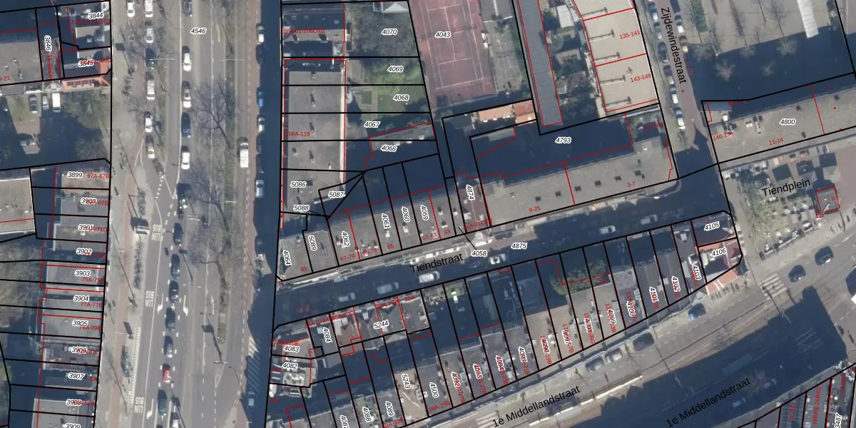 Tiendstraat 61 is gelegen op kadastraal perceel RTD06S4059. Deze kadastrale aanduiding is uniek en wordt gebruikt door het Kadaster om eigendomsrechten en andere zakelijke rechten vast te leggen. Het perceel maakt onderdeel uit van de kadastrale gemeente Rotterdam.