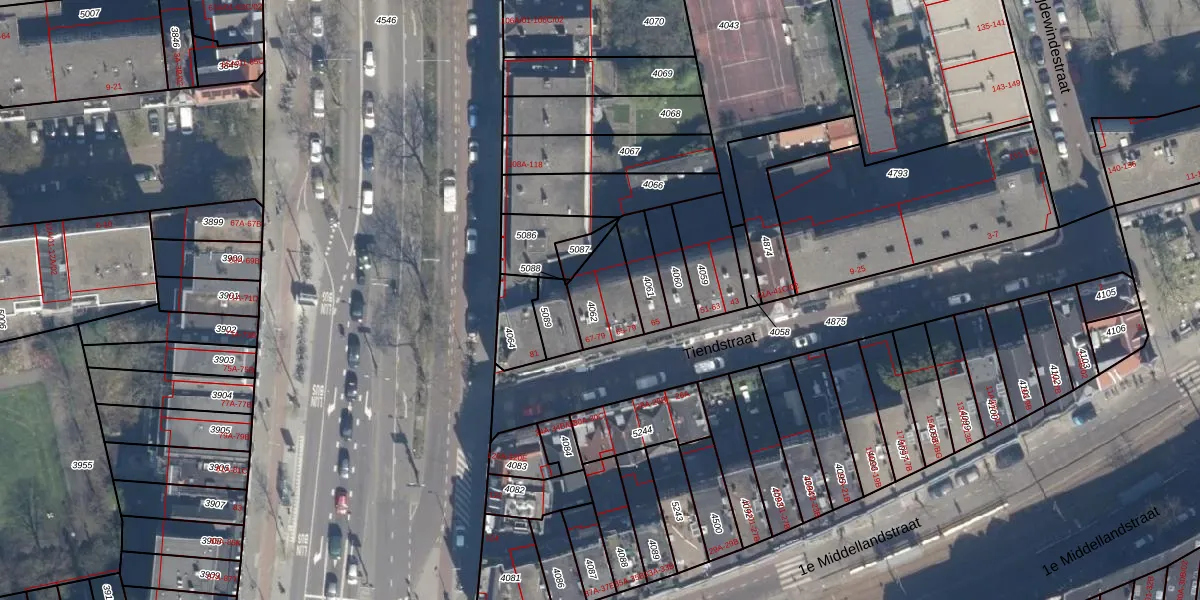 Tiendstraat 71 is gelegen op kadastraal perceel RTD06S4062. Deze kadastrale aanduiding is uniek en wordt gebruikt door het Kadaster om eigendomsrechten en andere zakelijke rechten vast te leggen. Het perceel maakt onderdeel uit van de kadastrale gemeente Rotterdam.