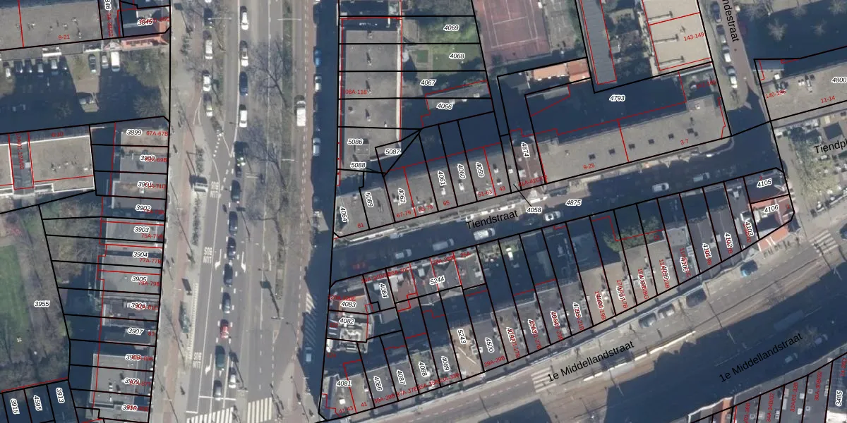 Tiendstraat 73 is gelegen op kadastraal perceel RTD06S4062. Deze kadastrale aanduiding is uniek en wordt gebruikt door het Kadaster om eigendomsrechten en andere zakelijke rechten vast te leggen. Het perceel maakt onderdeel uit van de kadastrale gemeente Rotterdam.