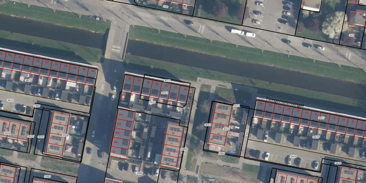 Tiengemetensingel 30 is gelegen op kadastraal perceel CLS00L3012. Deze kadastrale aanduiding is uniek en wordt gebruikt door het Kadaster om eigendomsrechten en andere zakelijke rechten vast te leggen. Het perceel maakt onderdeel uit van de kadastrale gemeente Charlois.
