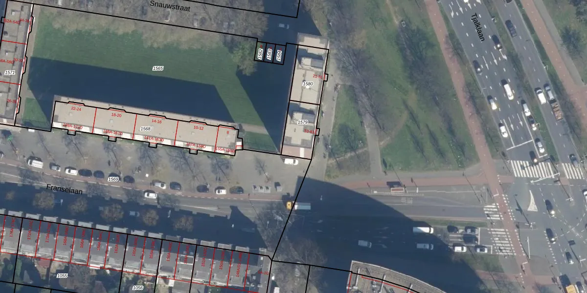 Het adres is gelegen op perceel 1579 in de sectie AA en de kadastrale gemeente Rotterdam. De kadastrale aanduiding is aldus RTD10-AA-1579. Het perceel is kleiner dan gemiddeld in Rotterdam. Het perceel is 202 m² groot, terwijl het gemiddelde ligt op 1602,8 m². De grootste perceeloppervlakte in de kadastrale gemeente is 30,3 ha. De kleinste oppervlakte bedraagt 0 m². Op het perceel liggen in totaal 16 adressen. In de Basisregistratie Kadaster (BRK) werden de grenzen van het perceel geregistreerd op 12-06-2008.
