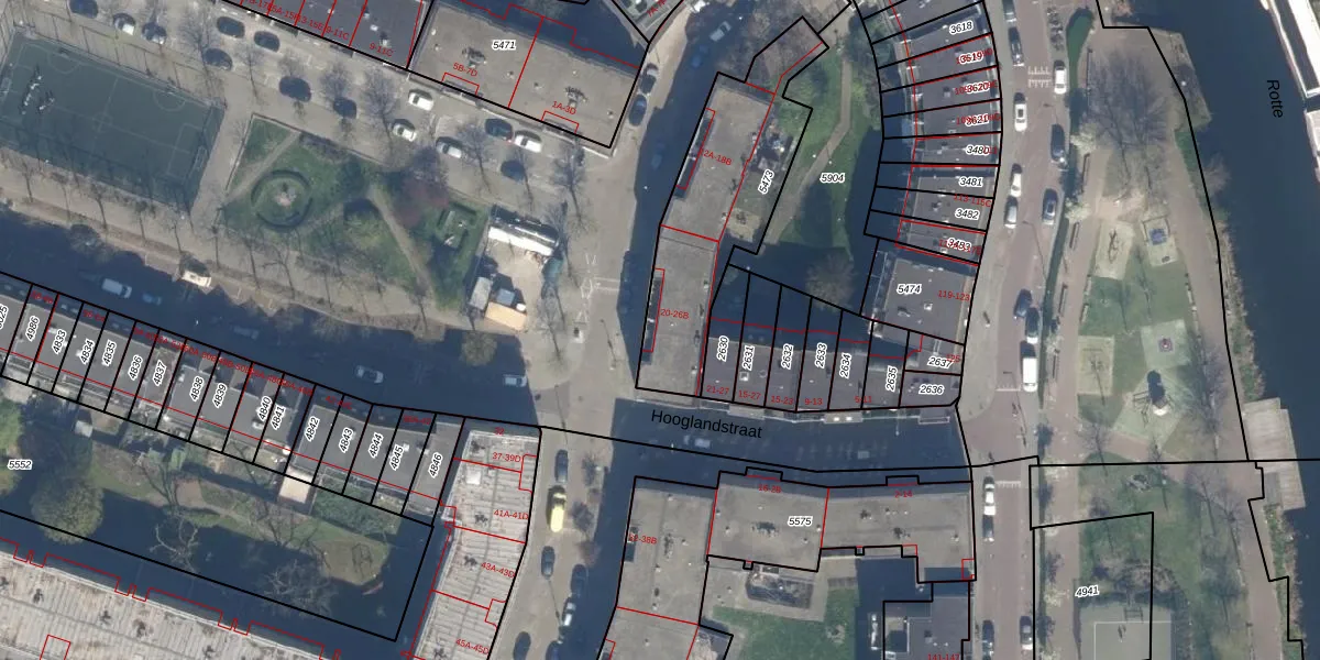 Het adres ligt op het perceel RTD09-Y-5473, dat zich in de kadastrale gemeente Rotterdam bevindt. Het perceel is met 685 m² relatief groot. Het gemiddelde ligt in de kadastrale gemeente Rotterdam op 443,14 m². Het grootste perceel in de kadastrale gemeente is 7,0 ha. Het kleinste perceel heeft een oppervlakte van 0 m². Op het perceel zijn 15 adressen aanwezig. De huidige grenzen van het perceel zijn digitaal in de Basisregistratie Kadaster (BRK) geregistreerd op 15-02-2011.