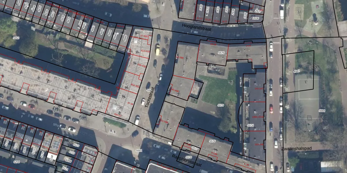 Het perceel waarop Tochtstraat 46-B staat heeft een oppervlakte van 955 m². Dit is een groot perceel. De perceeloppervlakte wordt geregistreerd door het Kadaster. Gedetailleerde informatie over de maten van dit perceel kunt u vinden in het rapport Kadastrale kaart met maatvoering van Tochtstraat 46-B.